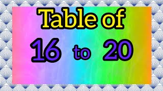 Table 16 to 20 || 16 to 20 Tables || Pahada 16 to 20 || Multiplication Learn || Learn Tables #tables