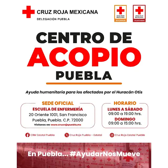 En respuesta a los daños causados por el Huracán Otis en Guerrero, la Cruz Roja Puebla, ha establecido un Centro de Acopio de Víveres 🥫🍼 para brindar apoyo inmediato a las comunidades afectadas ❤️. #UnidosPorGuerrero 🌪️❤️.