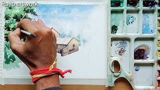 How to draw beautiful nature scenery with village girl figure, Oil pastel colour drawing stepby step