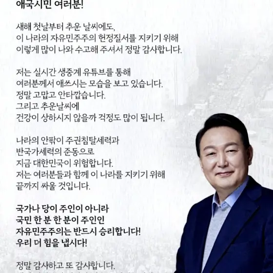 윤석열대통령께서 한남동 사저를 지키는 애국자들에게 보낸편지 감동입니다