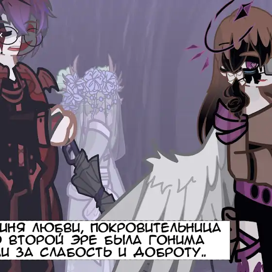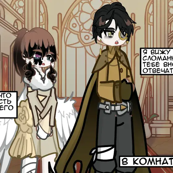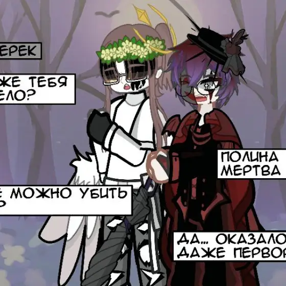 На картинке же... К Алэру пришел один из подчинённых Ерли, который почему-то его искал. Как видно... У Алэра родимое чёрное пятно и венок из одуванчиков, а также крылья от мамы достались (угу, они у него и в детстве были, это не ангельские крылья. После см#рти лишь нимб появился) 🥹