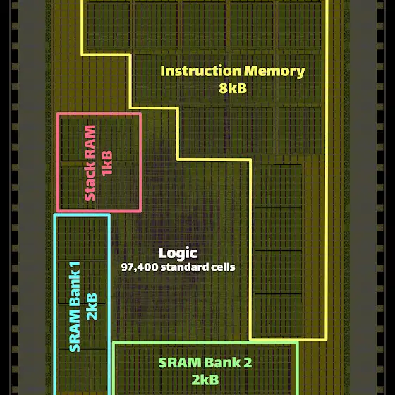 - 16 GPIO, SPI, UART and an 8 bit parallel memory loader interface