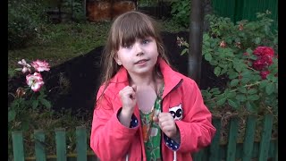 Вика помогает копать картошку