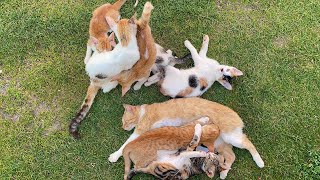 Cats playing and Drinking Milk From Their Mum