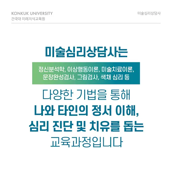건국대 미래지식교육원 심리상담·인재교육 분야 · 미술심리상담사 · 심리학&상담심리사 · 아동미술지도사 · 컬러테라피전문가www.kucc.kr