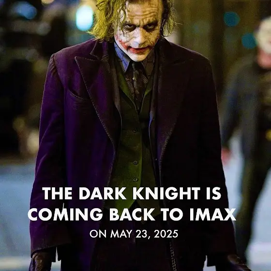 "The Dark Knight returns to IMAX! 🦇🔥 Don’t miss your chance to witness Gotham’s hero face off against the legendary Joker on the big screen like never before. Experience Christopher Nolan’s masterpiece in stunning IMAX clarity starting May 23, 2025!