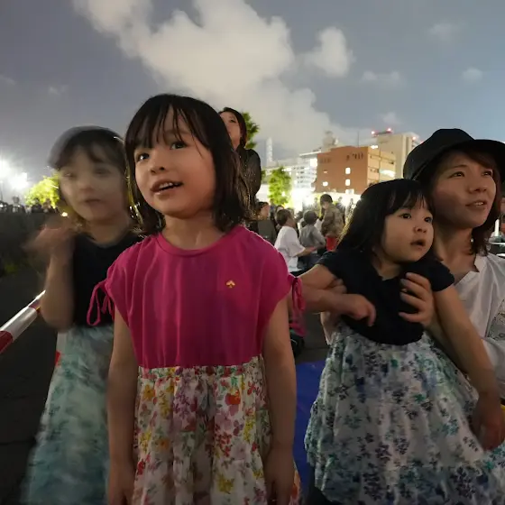 今日は横浜の開港記念日で花火を打ち上げるそうで三姉妹と一緒に花火を見に行きました!