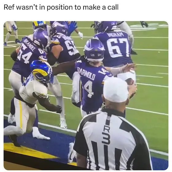 Rams ran the ball like crazy, but it doesn’t matter what the score is, it could be 49-0 and if there is a facemask, IT NEEDS TO BE CALLED. Im a Lions fan, I hate to see it happen even to our rivals. NFL isnt beating the script allegations this time. Absolutely ridiculous NY “didnt see” this penalty with the ref looking directly at it happening, cant get anymore obvious than this. #NFL #Vikings