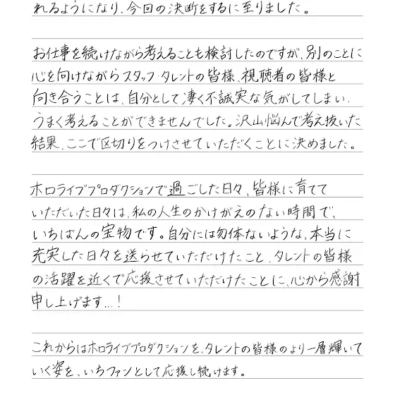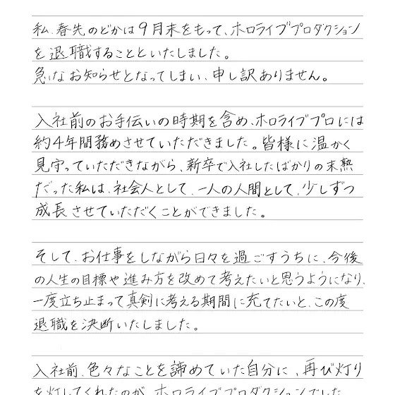 ホロライブスタッフ春先のどか、退職