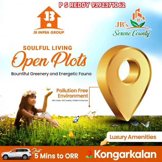 PSR PROPERTY ADVISOR 9392371062JB’s New Project Lunching On 28th Jan 2025 At Kongar Kalan, Mangalpally #primeplots #jbserencounty #hmdaplots #jbinfragroup #kongarakalan #Mangalpally #foxconn #kaynes #rrcollectorate #tcs #tataairospace #wonderla #orrexitno13 #orrexitno12 #villas