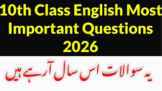 10th Class English Most Important Questions 2026 || 10th Class English Guess Papers 2026 ||10th BISE