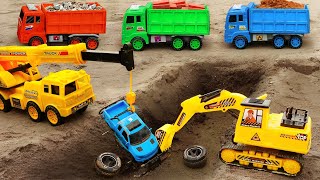 Falling into the pit | construction vehicle toy animation | digger animation for kids,