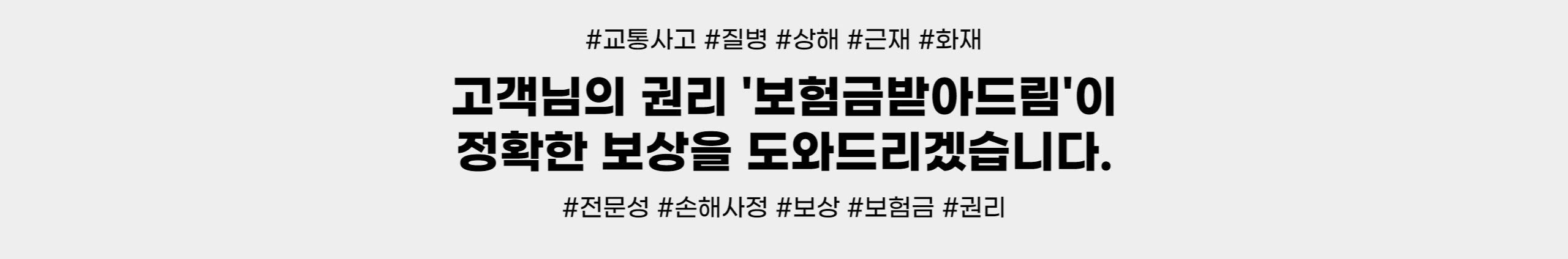 고액 사건만 골라 수임하지 않습니다.차별화된 전문성을 바탕으로고객님의 권리 '정확한 보험금'을 받아드리기 위해 노력합니다.블랙박스 영상 제보 ☞ goblackbox@daum.net카카오채널 문의 ☞ pf.kakao.com/_xbMmixj보험금 보상신청 ☞ naver.me/xmPxD2cu- 보험금 합의업무는 하지 않습니다. -