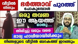 വീട്ടിൽ നിന്ന് ഭർത്താവ് പുറത്തു പോകുമ്പോൾ ഈ ആയത്ത് ഓതു..തിരിച്ചുവരും വരെ ഭാര്യ ഹാപ്പിയാകും RAMADAN