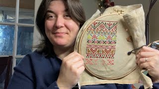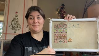 A bit about me: I’ve loved cross-stitching since I first was gifted a Dimensions kit over 15 years ago. I didn’t start cross-stitching daily until 2020 (we all know why!) but since then it’s been a daily habit and a wonderful way to reduce stress. I’ve been married to my wonderful husband for over 13 years and we have a seven-year old who is the light of our lives. We also have two goofy dogs and a very imperious cat. I work in a high-stress environment as an IT project manager for a medical university, but in my previous life I went to graduate school for English Literature and still carry that love of literature and reading with me.
