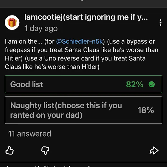 @FrankFrankUltimate 1: correction: I will not look like that in 2035 in fact YOU Will look like that 2: correction: I am on the good list while YOU are all the naughty list 3: correction 3: that is not my dance Routine in fact, that is yours