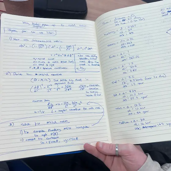 Inbound over the next few days, following this awesome tutorial from @ord https://youtu.be/imbIsNAvUpM?si=BfvEl..., will also be focusing on releasing some videos related to university, topics covered this week! If you like STEM subjects be sure to check in! Currently working through the mass of equations seen in the second photo as part of my on going coding project where I’m planning to use python and einsteins special relativity and general relativity equations to form a solar system within blender!