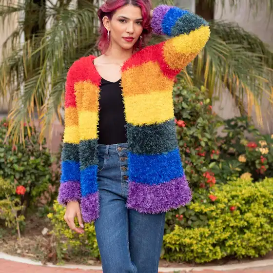 🧶 Estou rifando um casaco Rainbow tamanho P, feito com muito cuidado, ponto a ponto, por mim. Uma peça única, com entrega totalmente por minha conta 📦💝