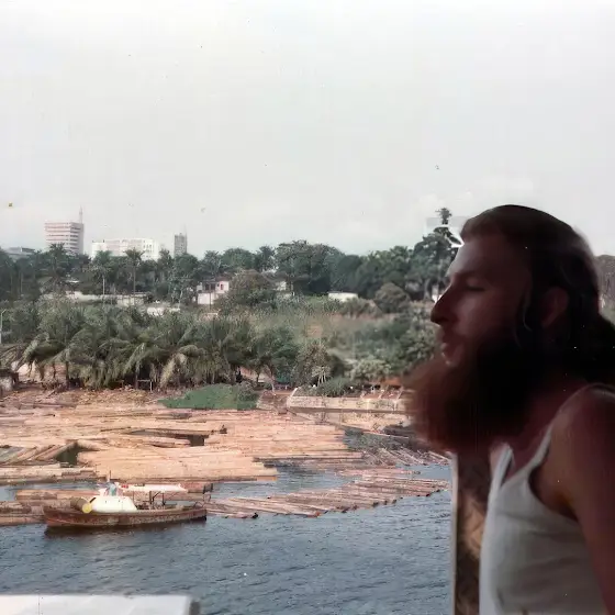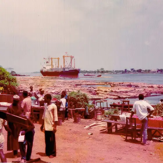 Abidjan on the Ivory Coast, logs are floated to the ship