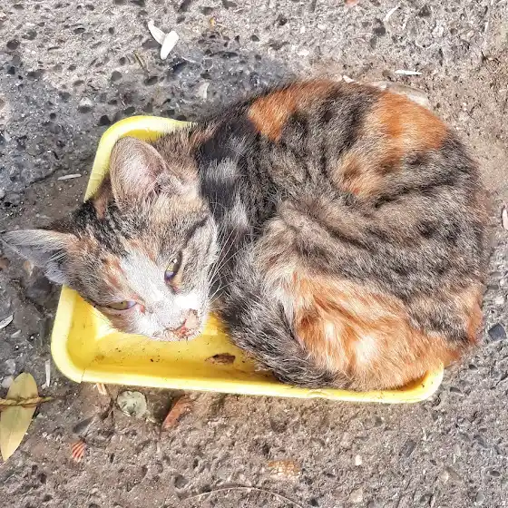 The poor cat is sleeping in a box. I feel sorry for him. Homeless animals need our care; we must be kind to them π₯π₯π₯