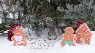 Relaxing Squirrels & Snowy Backyard Birds WITH Background Music Christmas Cat TV for Pets 3 Hours 4K