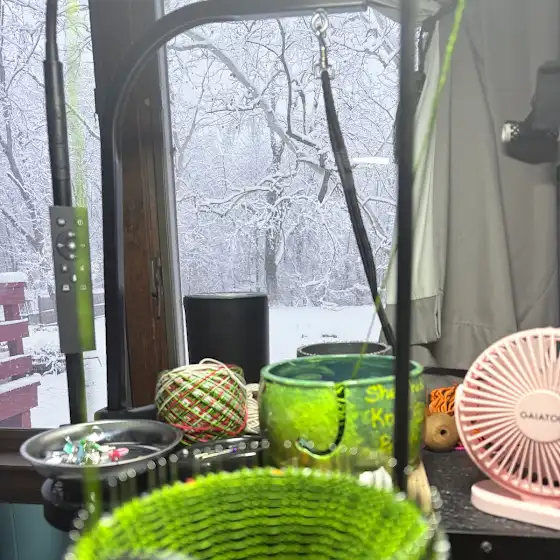 The view from here! #snowysunday #antiqueknittingmachine