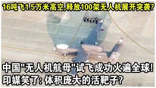 A 16-ton drone carrier, flying at an altitude of 15,000 meters, suddenly releasing 100 drones for...