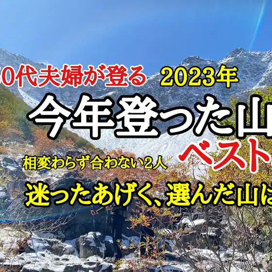 こんにちは 気ままな夫婦です。今年も残すところあと2日となりました。2023年も色んな山に登ることができました。一年を振り返り【今年登った山 ベスト5】の動画を明日 12/30(土) 19時 アップします。今年一年をいっしょに振りかえっていただけたら嬉しいです。