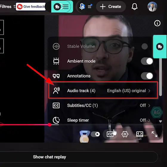 All the videos are automatically translated (subtitles) and dubbed (audio tracks) into many different languages. You can choose the audio and subtitles language in the settings, as in this screenshot.