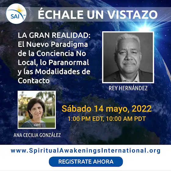 ❤❤ Spiritual Awakenings International (SAI) en ESPAÑOL. Este Sábado 14 de mayo, 2022: La Gran Realidad: ECM, OVNI, lo Paranormal y Modalidades de Contacto" con Rey Hernández #spiritualawakeningsinternational #eet #ecm #ovni #reyhernandez