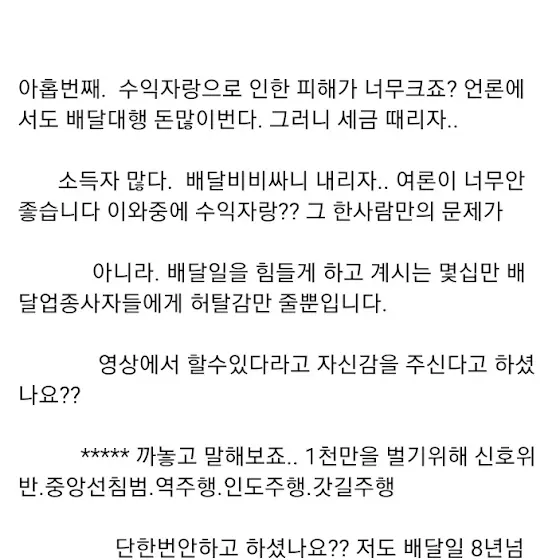배달하시는 수십만 라이더가 피해본다고