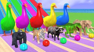 Long Slide Game With Elephant Gorilla Buffalo Hippopotamus Tiger - 3d Animal Game - Funny 3d Animals