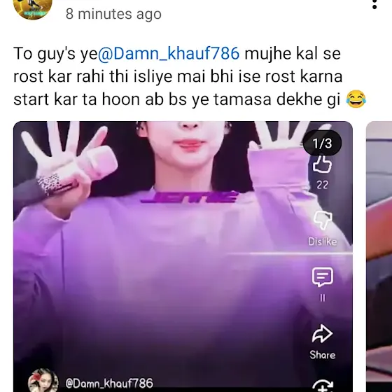 Bhai tu issey roast kehta hai mai ussey public self embarrassment kehti hun like us video me roast kaha hai? Aur ha mai tujhe kyu rokungi mujhe terese ussi din se nafrat ho gyi hai aur wo tu hi tha na wo meri story par reply karke bolta tha "please palak come back" aur mujhe 24/7 annoying karta tha reply kar kar ke ? Jab mai teri zindagi se bahar chali gyi thi ? Bol Bhai? ๐น๐๐ปYaad aaya? Ki nahi