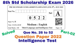8th Std SCHOLARSHIP EXAM 2026 | Maharashtra | 2022 | Paper-2 | Intelligence Test | Q 26 to 52 | P-02