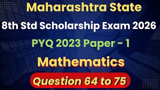 8th Std SCHOLARSHIP EXAM 2026 | Maharashtra | Paper-1 | Mathematics | PYQ 2023 | Q64 to 75 | Part-04