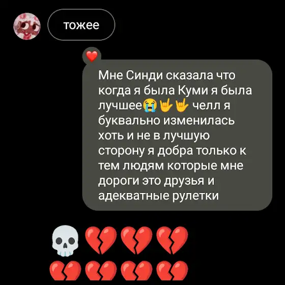 Хочу сказать факт о себе, я очень боюсь подростков, в том числе и агрессивных, у меня очень много историй связанно с подростками, честно скажу эти воспоминания не хорошие. И сегодня опять случился этот случай, я не кого не заставляю меня поддерживать и да, признаю что сейчас я ною, так вот. Переходим к истории, я шла на урок рисования, когда пришла оставила рюкзак и вышла в коридор, в коридоре были челы явно старше меня, где то по 13-15 лет. Они начали шутить над о мной, что якобы кто из их другонов в меня влюблен, Интересно, как же пацану 13-15 лет, будет интересовать малолетка 11 лет в 6 классе которая толком не учится. Она начали подкладывать меня так до самой перемены, честно скажу, это было отвратно. Чуть ли не шутили про секс, это очень меня ранило, я не могла заплакать из за того что на перемене было много людей, а ещё эти ебаннаты с пубертатом 100 лвл, издевались бы больше. Типо "я же пошутил чё ты ноешь" и т.д.