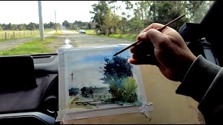 我比预定时间早到了半小时,我用这个时间画了停车位前面的房子 Painting my travel跟着画家去旅行 | Melbourne | 水彩画风景写生 | Watercolor landscape