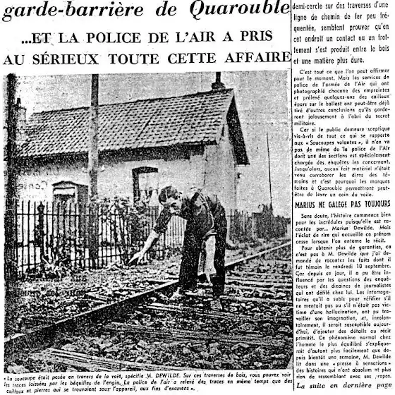 Маріус Девільд прийшовши до тями відразу кинувся шукати поліцейських. І не даремно. З настанням дня обстеження місця події дало більше подробиць: невеликі камені під залізничними коліями були обвуглені довкола широкої шестиметрової западині. Шпали між сталевими коліями також мали деякі симетричні позначки. Крім того, кілька місцевих жителів заявили, що бачили предмети та істот, схожі на ті, свідком яких був Девільд.