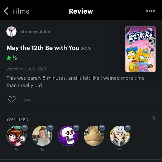 Letterboxd Review #21: The Simpsons Disney+ Short: “May The 12th Be With You”