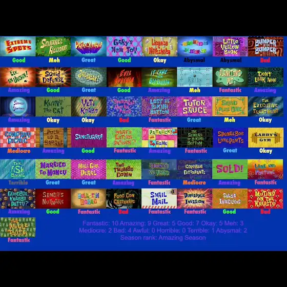 Here is my Updated SpongeBob SquarePants Season 9 Scorecard. If season 8 was a solid turning point, then season 9 is the much better improvement. While of course it’s not shy from bad/atrocious episodes, I can safely say this is where the show got so much better. And not just after the second movie either. Top 10 Best