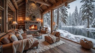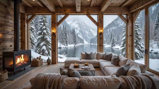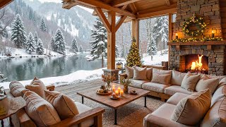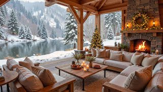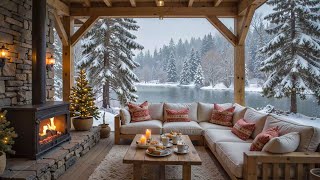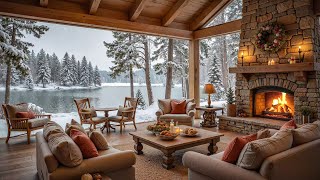 Peaceful Winter Snowfall at Cozy Lakeside Porch βοΈπ₯ Piano Music & Fireplace Ambience to Relax