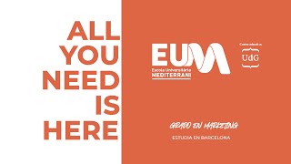 EUM is a centre affiliated to the UdG in Barcelona and we teach the official university degrees of Degree in Tourism, Degree in Marketing, Double Degree in Tourism and Marketing and Degree in Business Logistics (DUAL). We also offer the HNC in Marketing and Advertising and the HNC in Tourism Accommodation Management, all of which are officially recognised by the Generalitat de Catalunya.