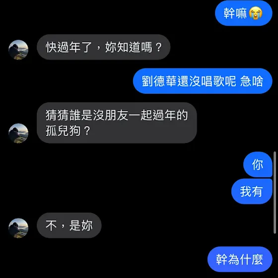 🐶:單身的人沒有女朋友一起過年