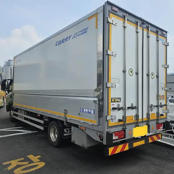 메가트럭5톤 후축 냉장 윙바디 차량이 입고되었습니다