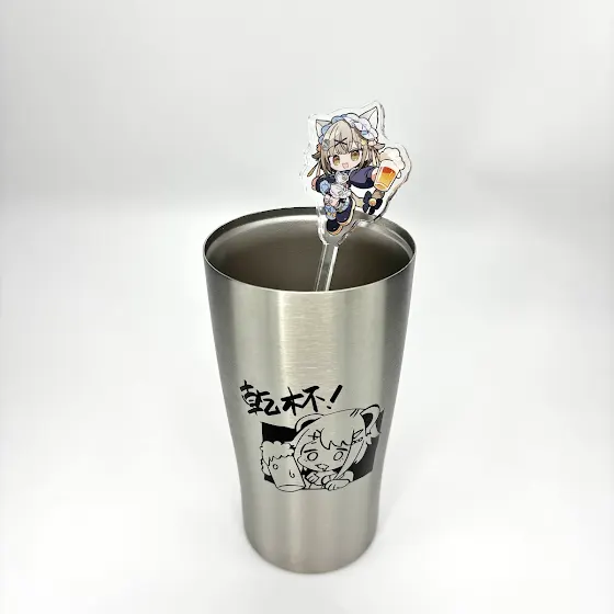マドラーはでっっかいタンブラーに入れても混ぜやすいロングサイズにしてもらいました✌️嬉しい!!ミニキャラみあち ちっちゃいのに存在感あって良い…