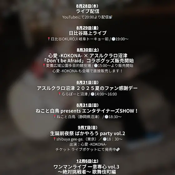 8/29(日)は日比谷OKUROJI 岐阜トーキョー前にて開催「心愛 -KOKONA- Spcial LIVE」に出演🎸