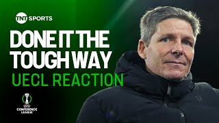 Oliver Glasner reacts after Palaceโs 2-2 draw sends them into the Conference League Play-Offs ๐ช