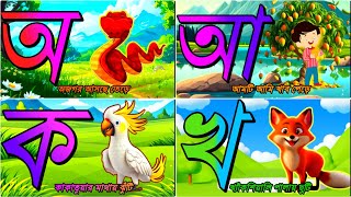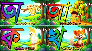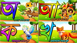অ এ অজগর আসছে তেড়ে, আ এ আম টি আমি খাবো পেরে , ক এ কাকাতুয়ার মাথায় ঝুঁটি, খ এ খেকসেয়ালি পালাই ছুটি। A for apple, ka kha ga gha in bangla, bangla barnamala, a a ajogor, aa a aam, Bangla Alphabets, Bangla language, how to speak bangla, Learn bangla, Ka a kakatua kha e khargosh, kheksiyali, kids education video in Bangla & English, English Alphabets