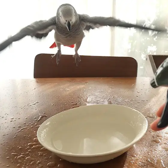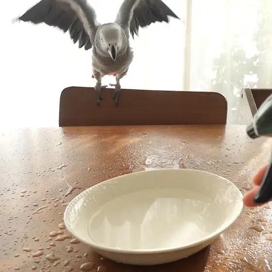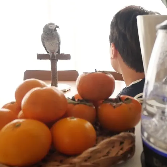 朝の水浴び放鳥/不貞腐れるヨウム/柿と手作りオヤツとLUPICIAのクリスマス紅茶/癒しの甘えん坊タイム【鳥のいる暮らし】
