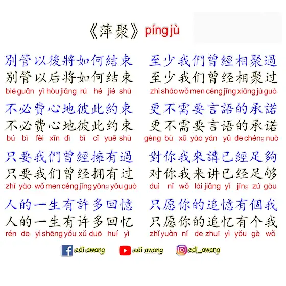 《萍聚》这首歌适合毕业时唱的歌,歌词短又容易记 !👍
